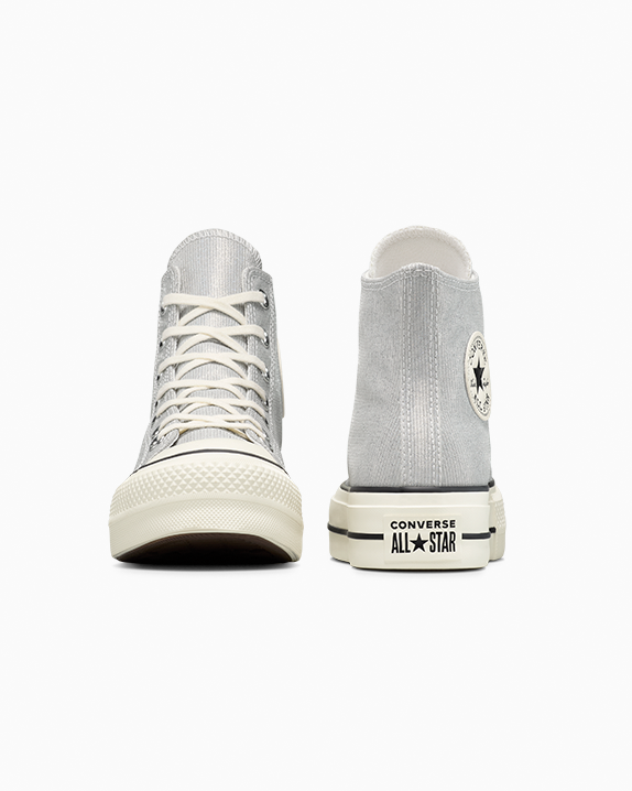 With sparkly platform Chucks, you always ready to party. Whether your calendar is stacked with special events or you're keeping it low key, these platforms are cause for celebration. Metallic hits shimmer in the light under the sun and on the dance floor.