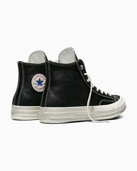 • Durable, perforated leather upper and matching fabric toe cap, with that structured Chuck 70 look and feel